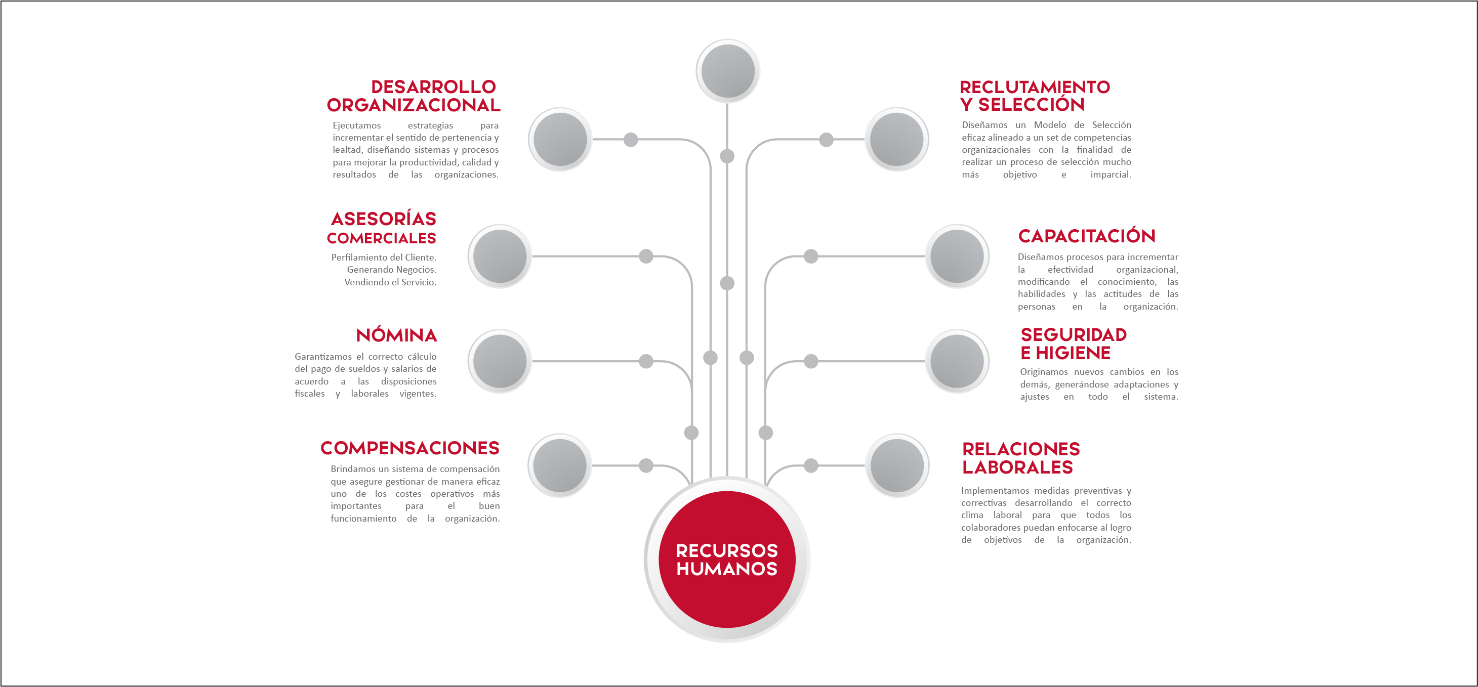 Procesos de Recursos Humanos, Estructuras y Re-estructuras (Alineación de Roles y Responsabilidades), Detección de Talento, Mentores Organizacionales.